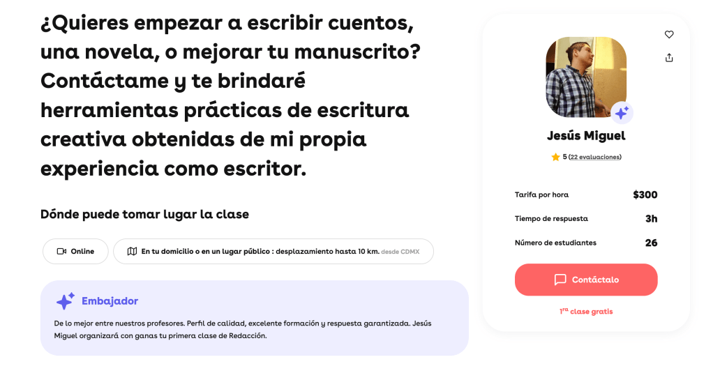 Por acá siguen abiertos mis talleres de narrativa en línea o presenciales en Ciudad de México: